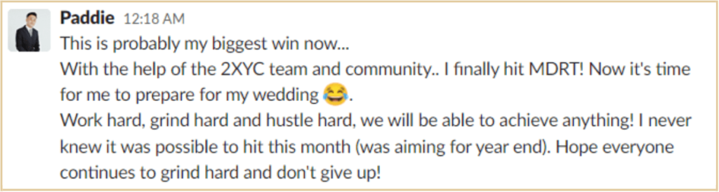 With the structured sales process, Padrick increased his closing ratio by 20-30%. He even went on to achieve over $200k FYC in less than 12 months!